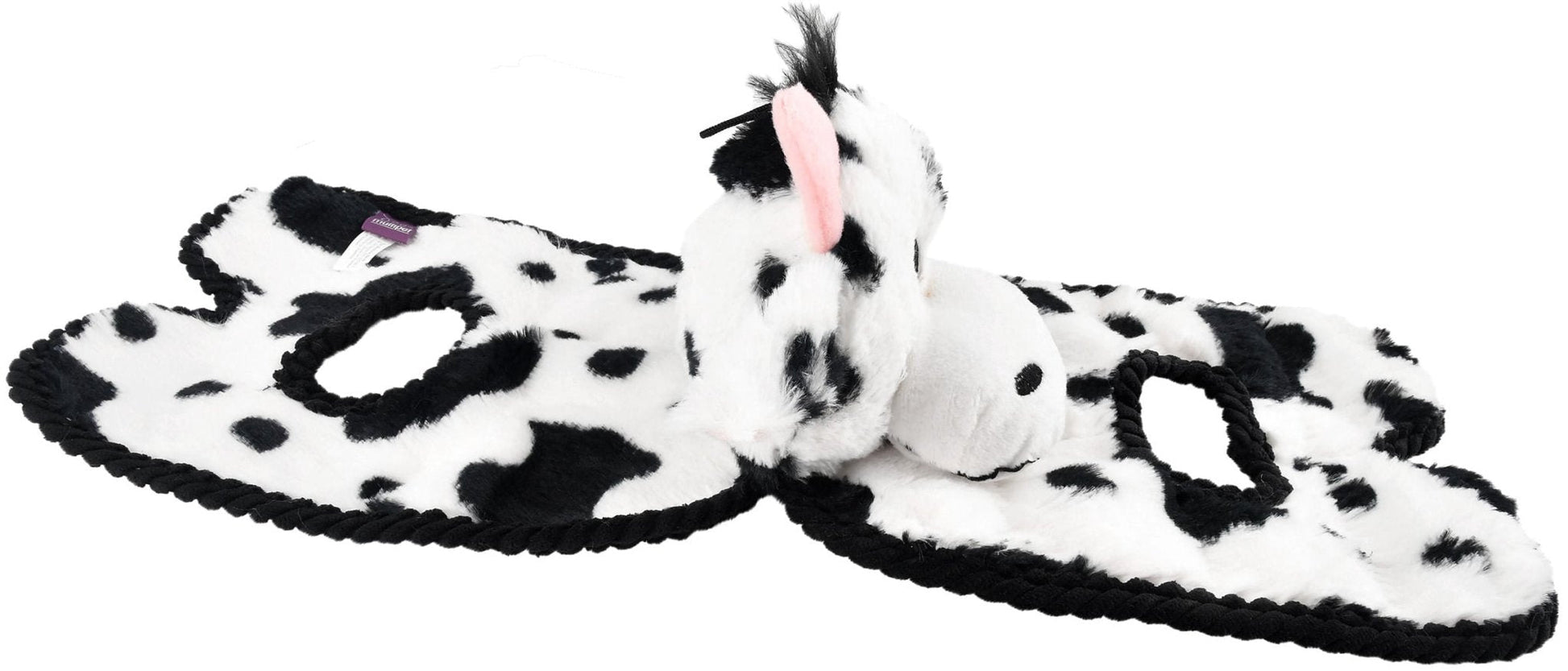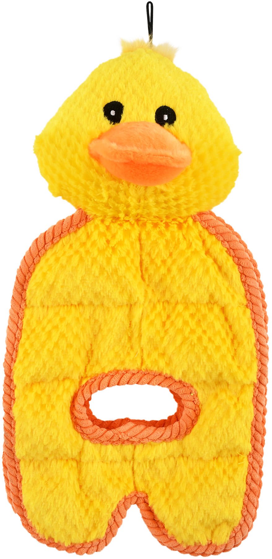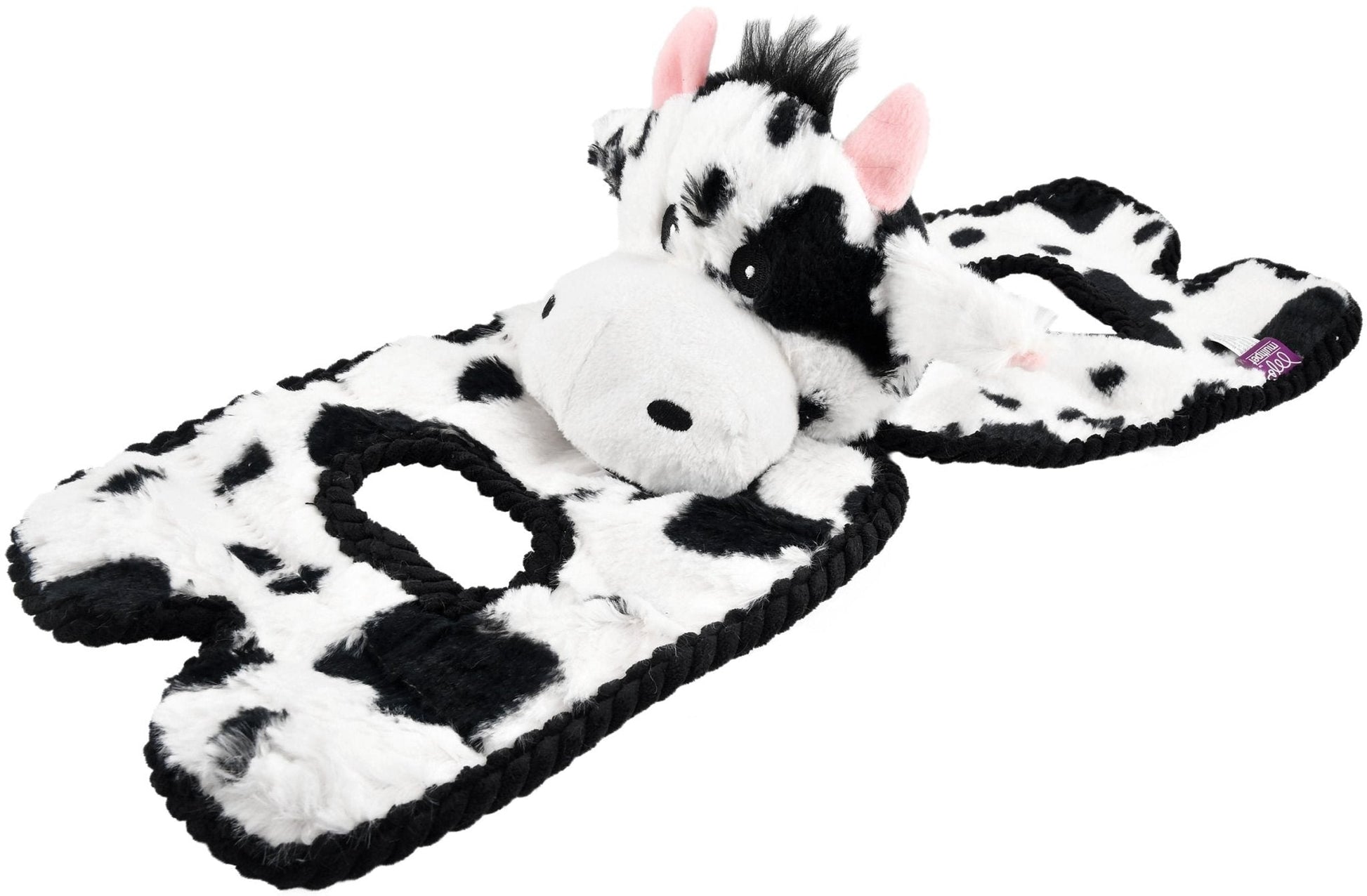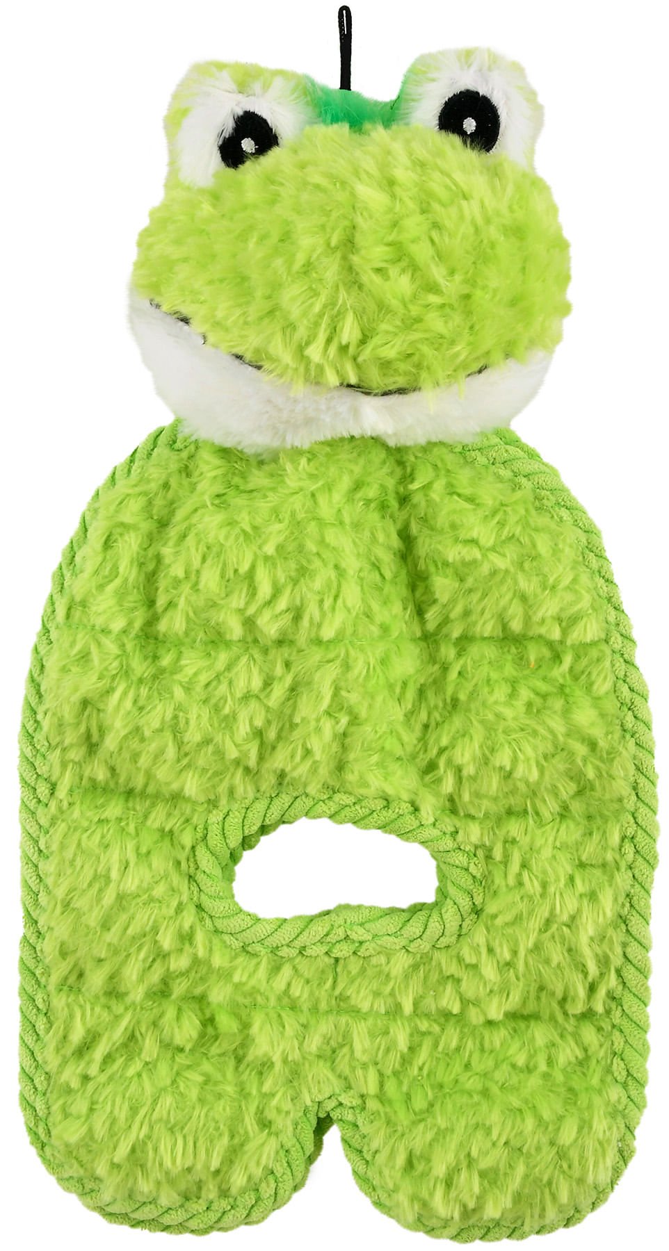 This toy is FULL of surprises! It has 8 squeakers in one side (flap), plus one in the plush head and the other side (flap) is full of crinkly, crackly fun! This toy also features ribbed corduroy trim around both flaps and around the handles in each flap. Perfect for a spirited game of tug-o-war with your pup! This toy is also great for dogs that play alone and love to shake, crinkle and squeak.